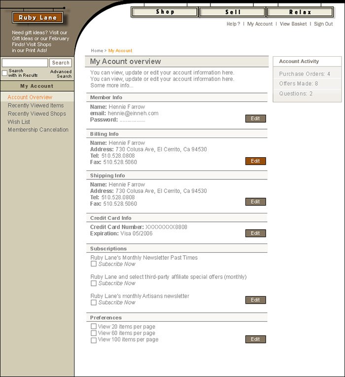 Landing pages for: Shop, Sell, Relax. These images also reflect the events the are happening through out the year.